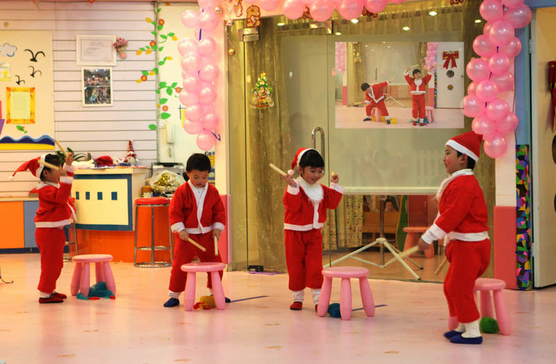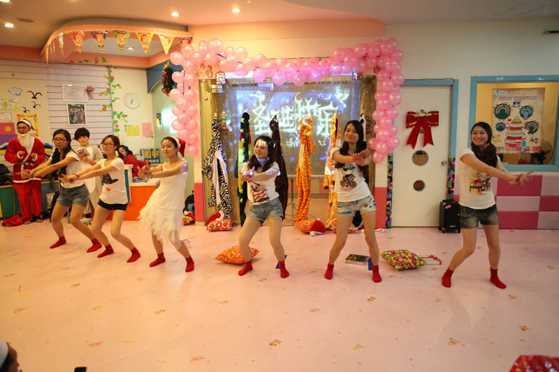 踩著樂點(diǎn),跳著歡快的舞蹈,你們現(xiàn)在看到的是:平時(shí)看不到的老師哦。為了你們的圣誕快樂,她們辛苦了。