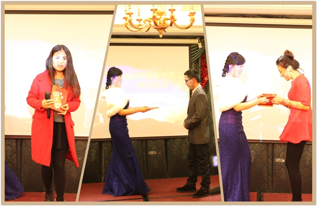 整個(gè)2014年,嬰智貝佳人在每個(gè)工作崗位上都默默奉獻(xiàn)、付出了很多很多。晚會(huì)上鄭老師為從嬰智貝佳人中評(píng)選的三位“2014年度優(yōu)秀員工”頒發(fā)獎(jiǎng)狀和獎(jiǎng)金。他們分別是:嬰智貝佳總部的李老師、嬰智貝佳七寶園的董臣以及嬰智貝佳老閔行園的龍金蟬。獲獎(jiǎng)?wù)叨技?dòng)的熱淚盈眶,為身為嬰智貝佳人而感到自豪,并感謝身邊的朋友和同事們,他們?cè)趮胫秦惣褜W(xué)會(huì)了很多,在不斷的成長(zhǎng),和所有的嬰智貝佳人一樣,他們所有的付出都是值得和獲得回報(bào)的。