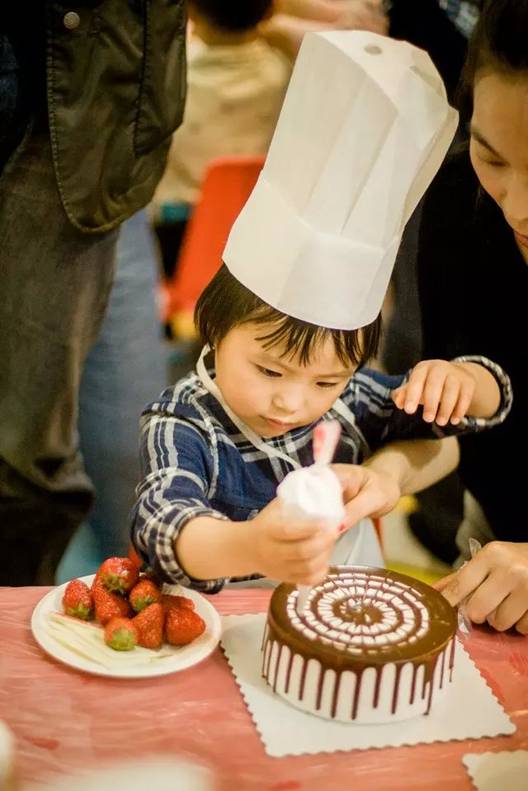 生日主題派對(duì)當(dāng)然少不了可口的蛋糕啦~蛋糕師傅在上面認(rèn)真的講解著如何做蛋糕會(huì)更漂亮,小家伙們聽的可認(rèn)真了