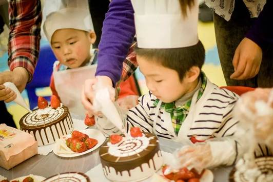 小朋友們正在認(rèn)真的裝飾自己的小蛋糕呢~