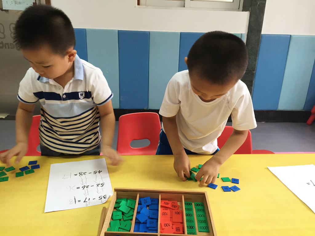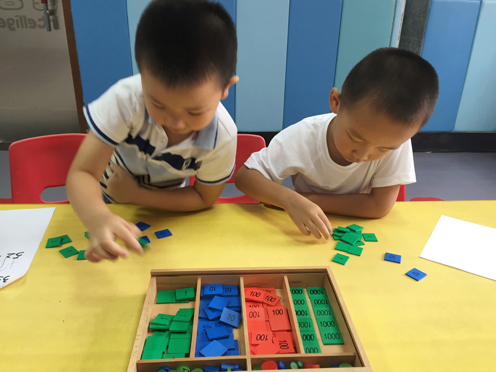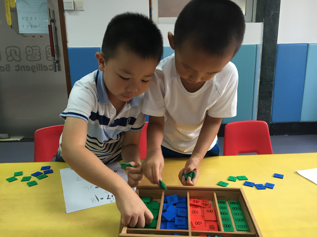 嬰智貝佳采用了以蒙氏教具操作為主導,提供大量操作材料,讓孩子借助材料進行操作,學習分類、組合、序列、等量關系代換,建立大數目的數字、數名、數量關系,讓枯燥、抽象的數學更生動、有趣。并且在專業(yè)教師的引導下,孩子可以主動建構自己的經驗和知識,形成自己的認知結構和思維系統。養(yǎng)成不怕數學喜歡數學的推理習性。