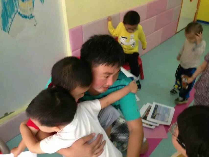 爸爸進(jìn)課堂太開心了,該想想喜歡的方式。喜歡爸爸進(jìn)課堂就抱抱吧