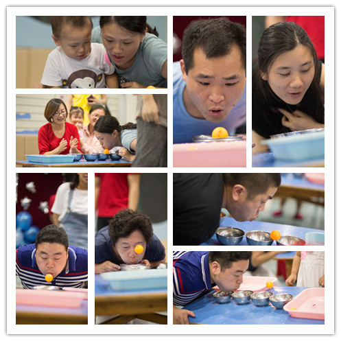 緊張刺激好玩的游戲來(lái)了,看看粑粑麻麻全神貫注全力以赴的吹啊吹,寶寶們?cè)谂赃叴舐暤暮埃骸凹佑?、加?......”,現(xiàn)場(chǎng)氣氛那是相當(dāng)熱烈??!