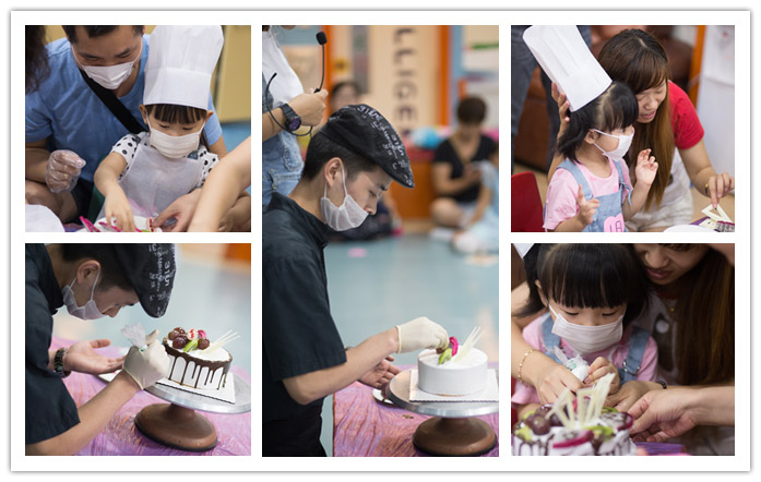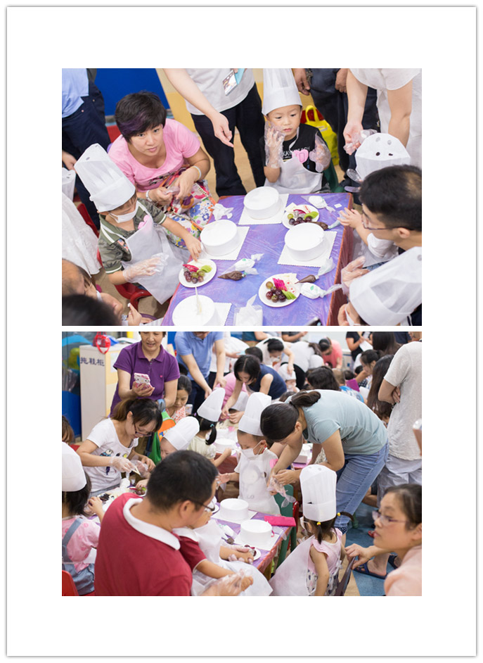 哇,蛋糕師請(qǐng)到了現(xiàn)場(chǎng),來(lái)來(lái)來(lái)做蛋糕啦。能吃到和爸爸媽媽一起做的蛋糕該是多幸福呀!瞧,孩子們有模有樣的穿戴好裝備,一副認(rèn)真的表情,可愛(ài)吧?!