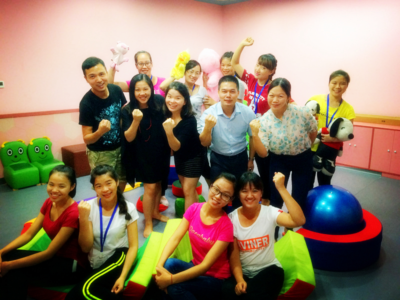 首先感謝總部老師這一個多月付出的心血,嬰智貝佳的鄭老師、李老師、小貝老師、朱老師、嬌嬌老師等等,她們都達到廢寢忘食的地步,冒著酷暑帶大家一步一步練習,一天一天一點點,一個手勢一個動作地帶下來。我代表南寧園首先要向總部老師們表示感謝:你們辛苦了,謝謝。我們南寧團隊此次來上海總部,我們管理層也付出了很大心血。每天我們會跟老師們聯系和溝通,給她們鼓勵加油。南寧公司的領導選擇早教行業(yè)也是看到了這個行業(yè)的發(fā)展前景,也得到其他股東的一致認可與支持。我們把招聘信息發(fā)布后,很多人踴躍報名,我們園的人數是幾大園區(qū)人數最多的。老師們來參加培訓后也沒有辜負期待,每個老師都很珍惜,有些剛畢業(yè)的老師在學識方面有些欠缺的都克服了自己的不足,還有許多老師克服了音律上的不足。她們上課認真做筆記,中午抓緊時間練習,晚上在宿舍中大家共同探討、演練、在短短一個月里把十幾套系列的課程一點點記錄下來,付出很多努力與汗水,我代表南寧公司的領導感謝我們團隊與公司的配合。我們回去南寧后,會把嬰智貝佳的理念帶到廣西去讓更多廣西的孩子受益。也請嬰智貝佳總部的老師放心,南寧園一定會配合總部的部署,把嬰智貝佳的教學理念與課程特色原汁原味地帶回去,服務好每個家庭,幫助更多孩子健康成長!