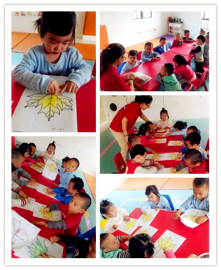 課堂上,孩子們通過對(duì)“秋”的觀察后發(fā)揮各自藝術(shù)潛力創(chuàng)意涂色