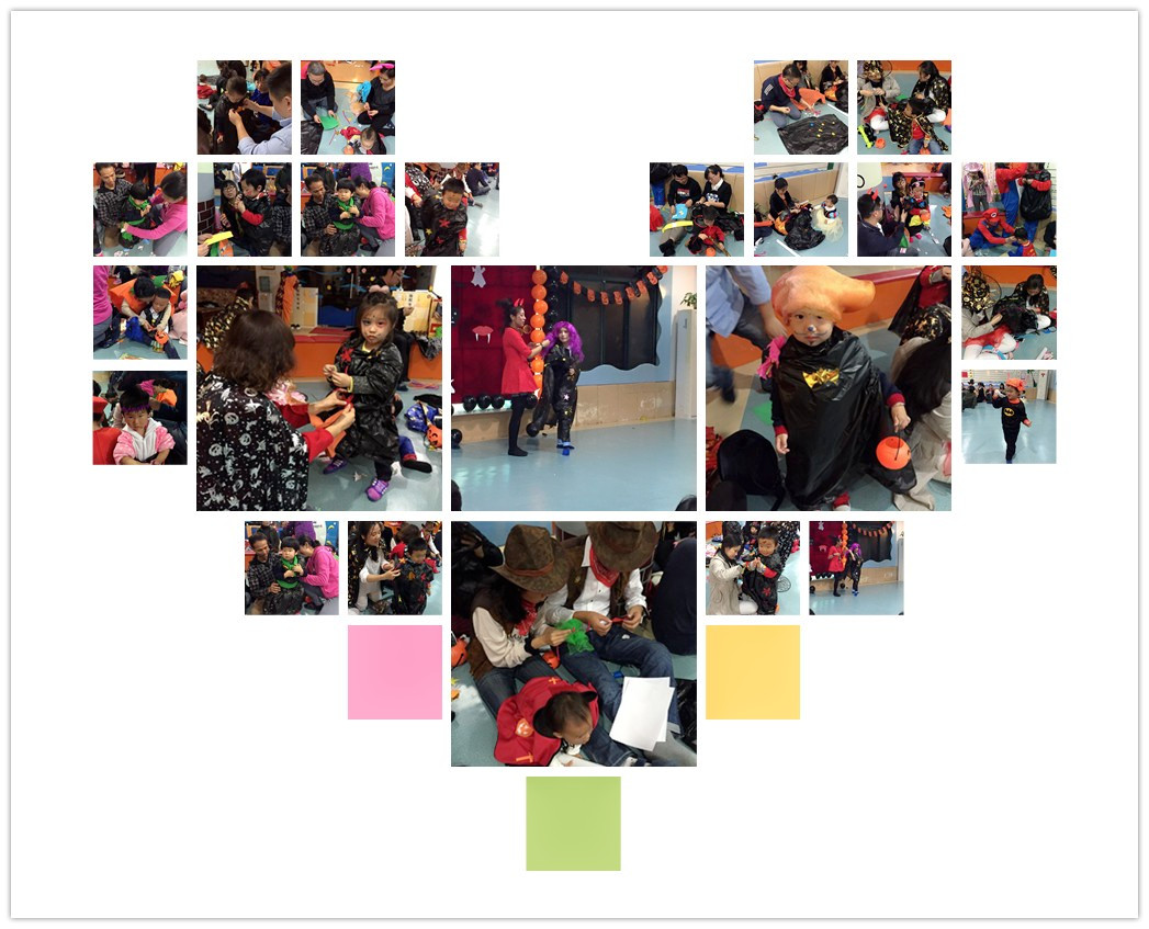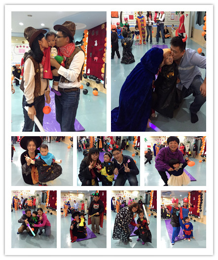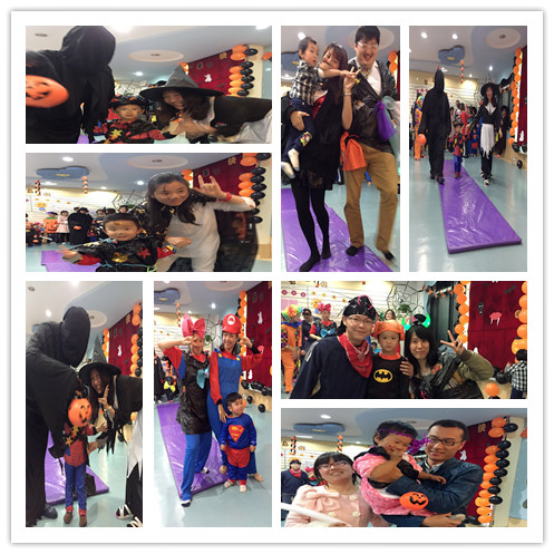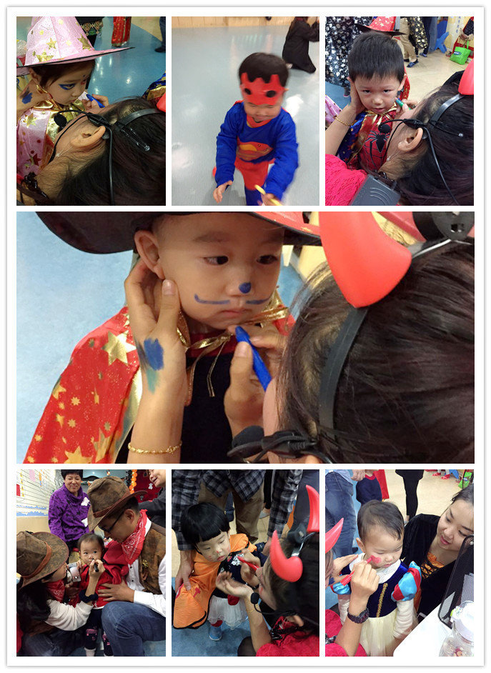 在萬圣節(jié)來臨前,嬰智貝佳七寶園勤勞的老師們自制多種材料精心布置教室,給小朋友們營造一個特別的萬圣節(jié)氣氛,特有的裝飾把我們的教室裝飾得更加可愛。晚上六點鐘一到,孩子、家長們都一番精心打扮到中心來。我們老師也特意為寶寶們準備了萬圣節(jié)的服飾和設(shè)計妝容。有的孩子打扮成小惡魔的模樣,有的孩子打扮成白雪公主,有的孩子“變身”超人,還有的孩子“變身”海盜……