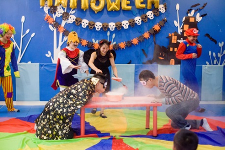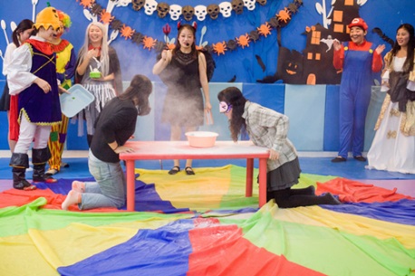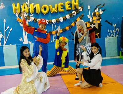 這次節(jié)目主持人是軒軒老師,宣布了萬圣節(jié)晚會(huì)正式開始!第一個(gè)節(jié)目是老師們的出場(chǎng)秀,里面有超級(jí)瑪麗,白雪公主,小丑,百變小櫻還有波利王子哦。