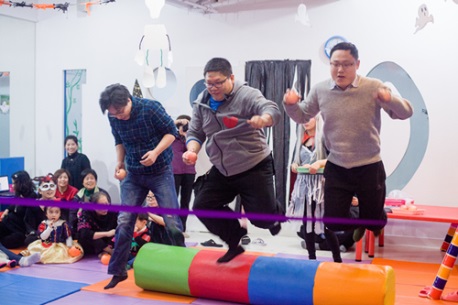 哈哈哈,玩這個(gè)游戲的家長們也是需要點(diǎn)勇氣的呢!