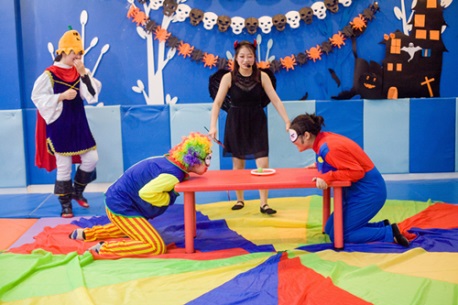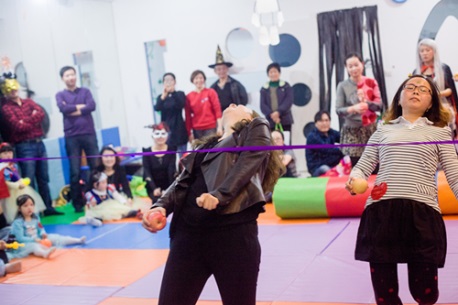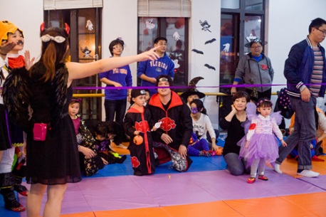 哇塞!我們的家長和寶寶們真的都好看極了,每個(gè)家庭都各有各的特色,真的是創(chuàng)意無限!很感謝我們的爸爸媽媽非常注重這次的晚會(huì)^^接下來是我們都萬眾期待的游戲環(huán)節(jié)啦~由各位老師示范表演了“傳遞幽靈湯”,這是需要家長寶寶們互相協(xié)作來完成的哦。游戲之前先跟著妖魔鬼怪們來活動(dòng)活動(dòng)自己的嘴巴~深呼吸?