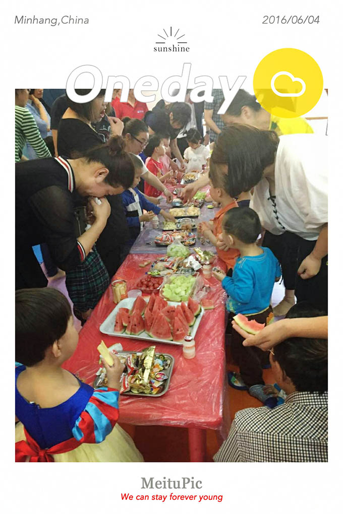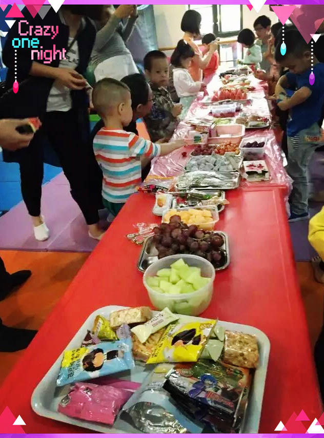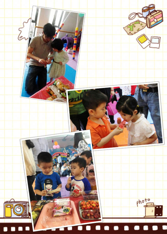 最后一環(huán)節(jié)是寶貝們的食物分享拍照留念。色彩繽紛的水果和美味佳肴的點心令寶寶們開心無比!