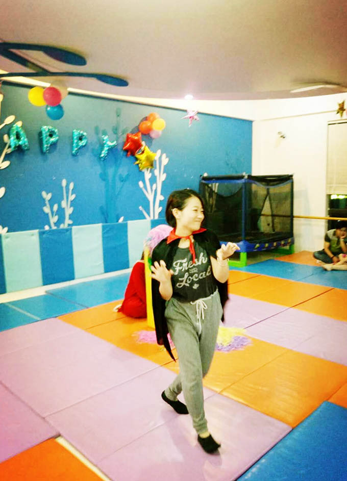 看,我們的老師是不是很可愛呀,因為在表演三只小豬的故事,豬大哥愛睡覺,豬二哥愛吃東西,豬小弟最勤快,看她們蓋的各式各樣的房子,有草房子,木頭房子,還有磚房