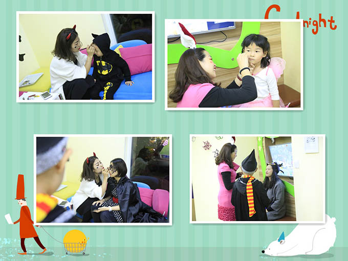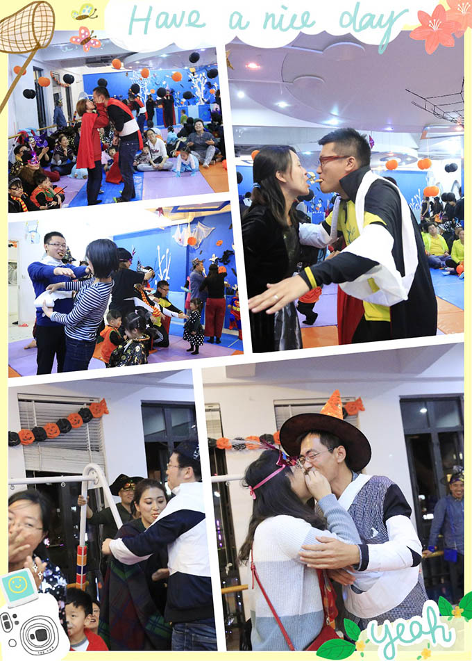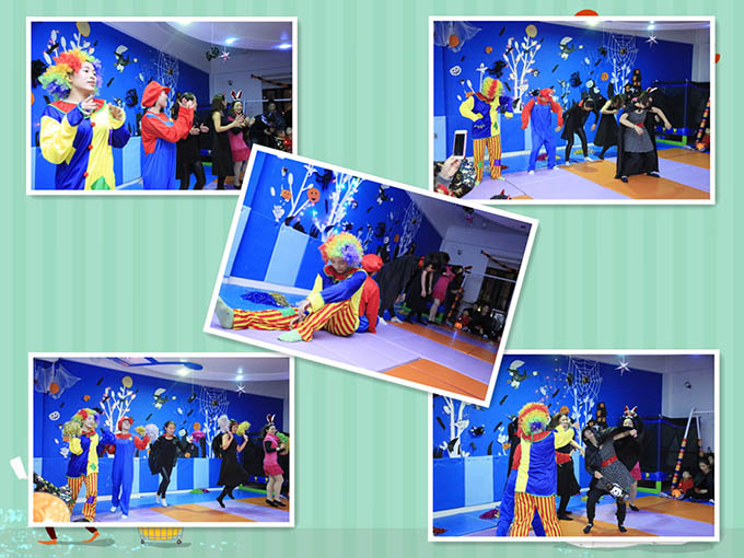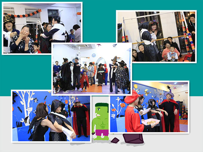 萬(wàn)圣節(jié)大聚會(huì)正式開(kāi)始,家長(zhǎng)和小朋友都樂(lè)呵呵的!國(guó)王出場(chǎng)……國(guó)王說(shuō):親愛(ài)的小精靈們,你們好啊!我們可以去唱歌、跳舞。