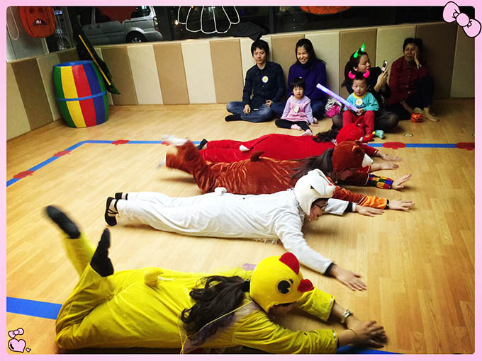 瞧,在今晚的主持人----喪尸姐姐的帶領(lǐng)下,寶貝們分別坐到了家長的腿上,開始進行膝上彈樂的熱身活動啦。