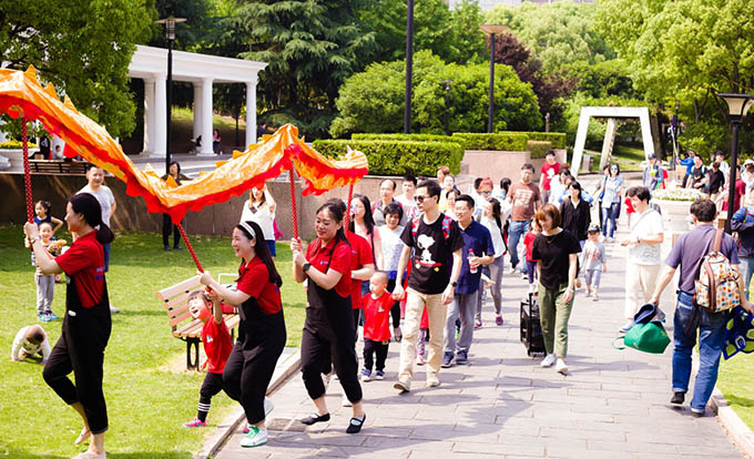 我們浩浩蕩蕩的舞龍隊(duì),有爸爸媽媽的加入變得更加氣宇軒昂了