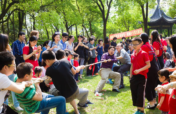 家庭接力賽,賽場(chǎng)上人聲鼎沸.家長臉上滿是興奮