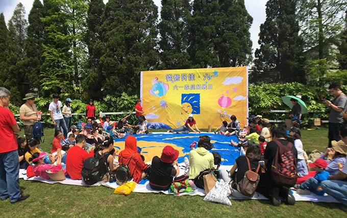 太累了要來休息一下了,寶貝們親手制作風箏,漂亮吧~!