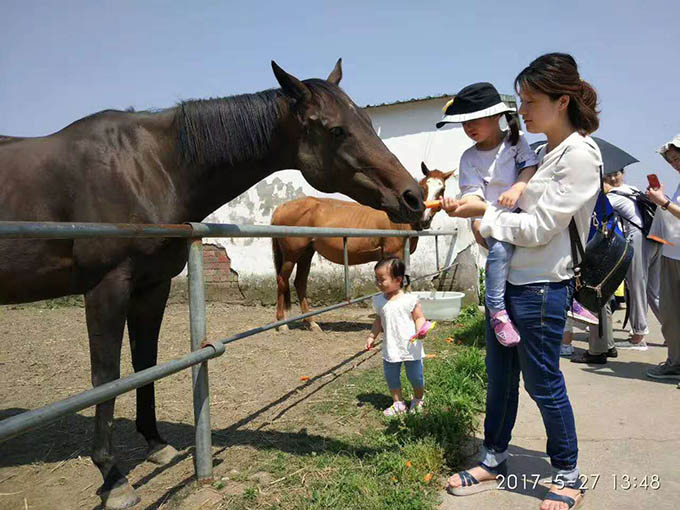 在高大的駿馬面前,寶寶們顯得如此嬌小。但是勇敢的寶寶我不怕,我敢喂大馬吃胡蘿卜!