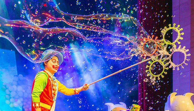 還有幽默搞笑的小丑表演和夢幻美妙的泡泡秀。