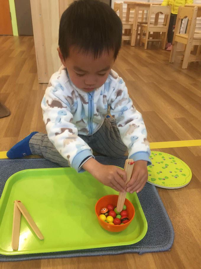 蒙氏兒童之家里的教具都是以一套的形式出現(xiàn),目的除了培養(yǎng)寶貝的專注力之外還有就是寶貝的合作意識,分享意識。