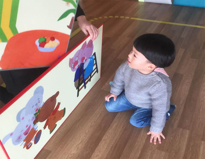這個小寶貝用老師的故事版在給他的小伙伴們講故事,他心里的故事又是怎樣的呢?