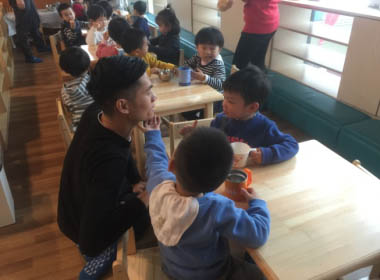 家長席地而坐,用孩子的角度去體驗他們在這里的日常