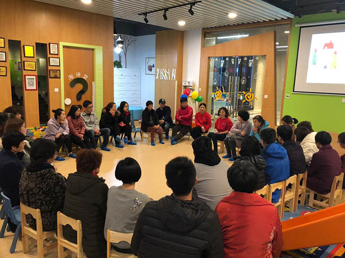 家長們圍成一圈兒和老師們一起探討,分享育兒問題