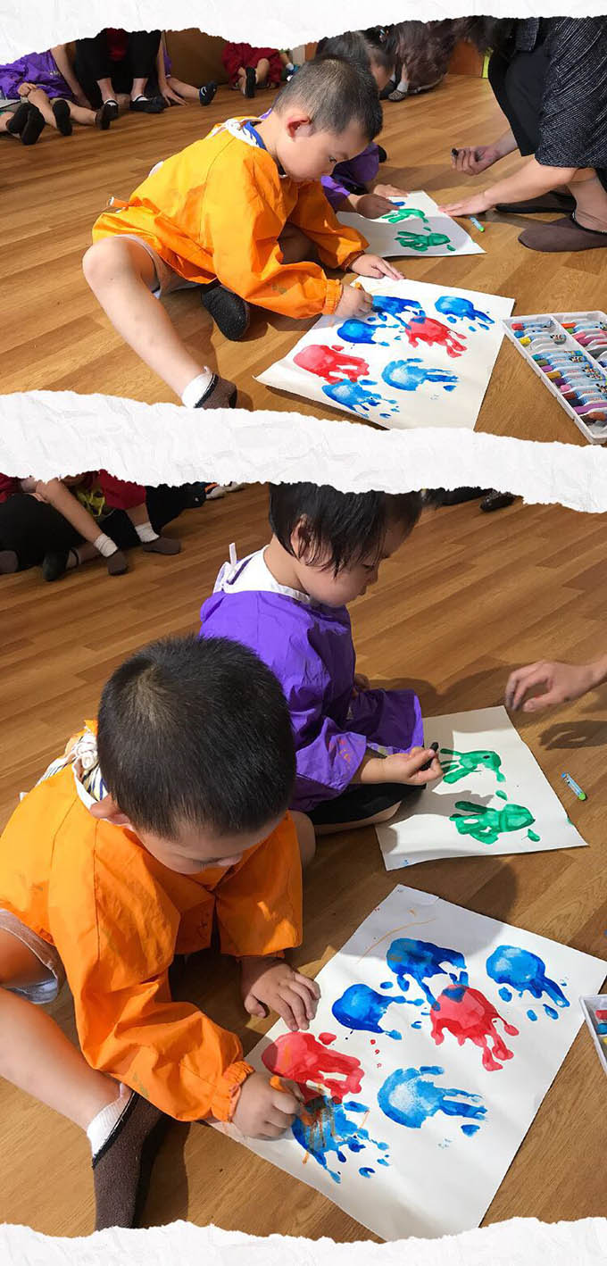期待并忐忑著,在柯老師的引導(dǎo)下,每個(gè)寶貝都印下了自己喜歡的“小魚”。