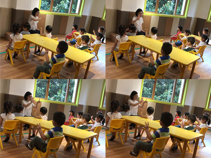 7月12日周四上午10點(diǎn)在莘莊園佳佳班也迎來了一位“媽媽”老師----桃老師,桃老師帶著一本神秘的繪本故事書歡快的進(jìn)入教室,在上課之前先來一段手指游戲活躍一下氣氛“I like to count my fingers”,快和桃老師一起伸出小手運(yùn)動(dòng)運(yùn)動(dòng)吧。