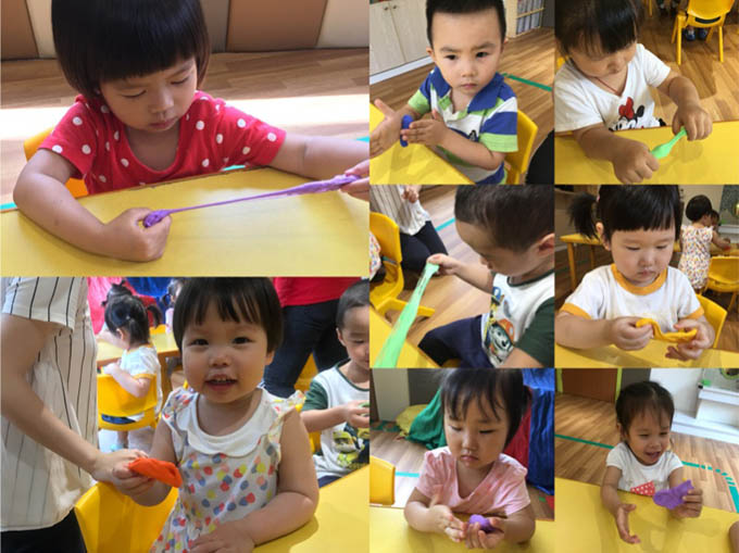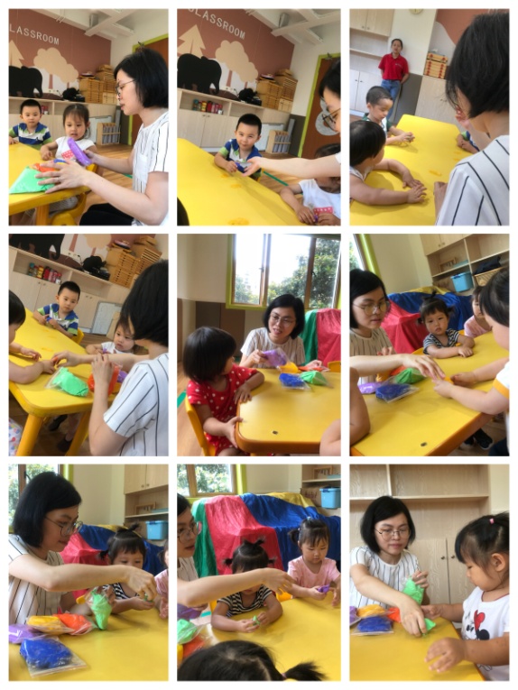 自己來做面包咯~揉一揉、拍一拍、捏一捏、拉一拉、搓一搓,“老師老師,快來看看我做的面包呀,嗷嗚,吃飽了”