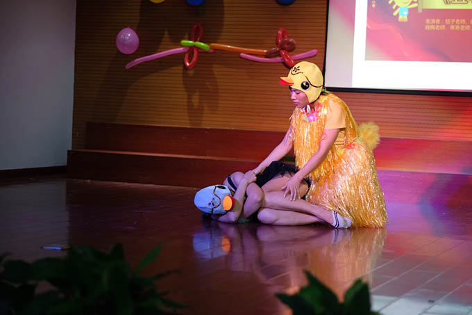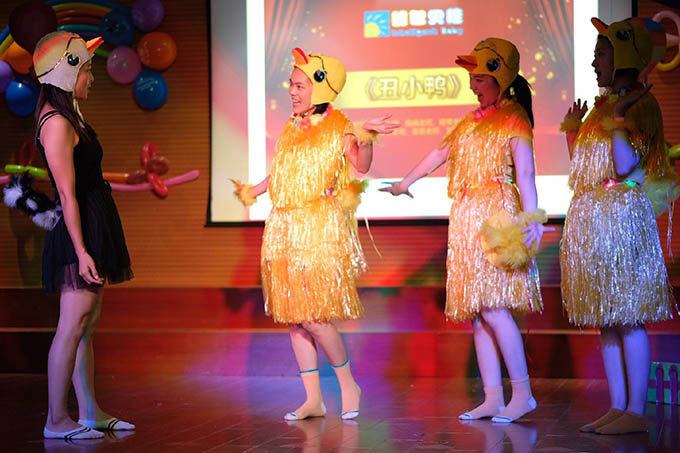 經(jīng)典舞臺劇《丑小鴨修改版》深入家長和寶貝的心,可憐的丑小鴨角色看哭很多寶貝和家長,丑小鴨因為自己的不同受到其他同伴的嘲笑和欺凌,在悲傷困境中丑小鴨依然不忘初心,一直記得我要做一個勤勞、善良、快樂的孩子;最終用他的善良感動所有人,收獲了朋友,收獲了快樂。這也是我們送給每一位寶貝的升學禮:未來我們不知道會怎么樣,希望未來的你們不管遇到多大困難都能勇敢面對,能一直保持著那一份和別人不一樣的獨特;勇敢做自己,快樂的長大。