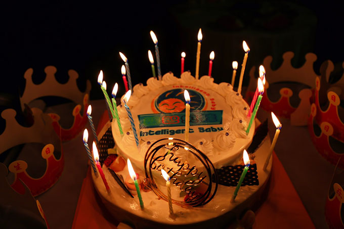 當燈光暗下來,蛋糕車隨著老師們集體哼唱的生日歌推上來的時候,一種嬰智貝佳大家庭的溫暖在彌漫。