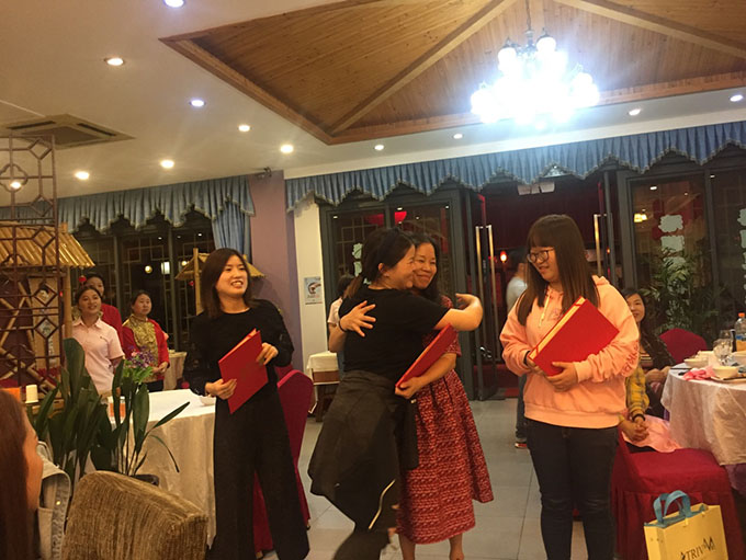 晚餐的最后,朱老師還將嬰智貝佳三位優(yōu)秀的兒童之家主班老師請了出來,請他們談?wù)勗趮胫秦惣褍和业某砷L歷程和心得,對她們的付出和努力表示肯定,并為她們頒發(fā)了“嬰智貝佳2018優(yōu)秀班主任”榮譽證書(每個獲獎?wù)哌€可獲得縱貫線雙人帳篷套裝一套)。三位老師對成長過程中幫助她們的同事們充滿了感激之情,這意外的獲獎讓她們感到非常的驚喜,園所的伙伴們也熱烈鼓掌為她們獲獎開心。