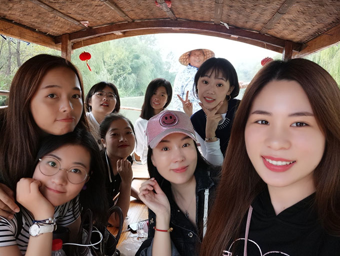 走走停停,逛逛走走,坐船自在跟著游。時間就這樣不緊不慢悠閑的游走了。在吃完溱湖湖鮮宴午餐后,就踏上了回滬的旅程。在朋友圈,在伙伴們各自的大群、小群,這兩天團隊游上靚麗的青春聲影和歡快的歌聲再次回響……