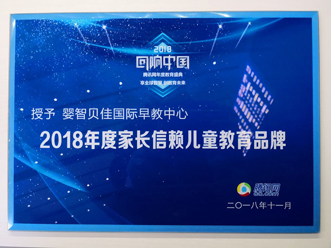 嬰智貝佳高質量的課程質量和良好的服務口碑,讓嬰智貝佳在2008年被評為“家長放心、寶寶喜歡”專業(yè)早教;2012年,在上海青少年活動中心四合一館成立嬰智貝佳親子館,成為計生委優(yōu)質早教的示范窗口;在2015年上榜中國網?生活消費頻道發(fā)布的“2015年中國十大早教品牌排名”;2016年,嬰智貝佳與華漕鎮(zhèn)政府合作,在大虹橋板塊核心區(qū)域正式啟動揭牌儀式,華漕鎮(zhèn)早教中心嬰智貝佳親子館正式成立;本次騰訊網主辦的2018“回響中國”教育年度總評榜,嬰智貝佳再次榮獲“2018年度家長信賴兒童教育品牌”。