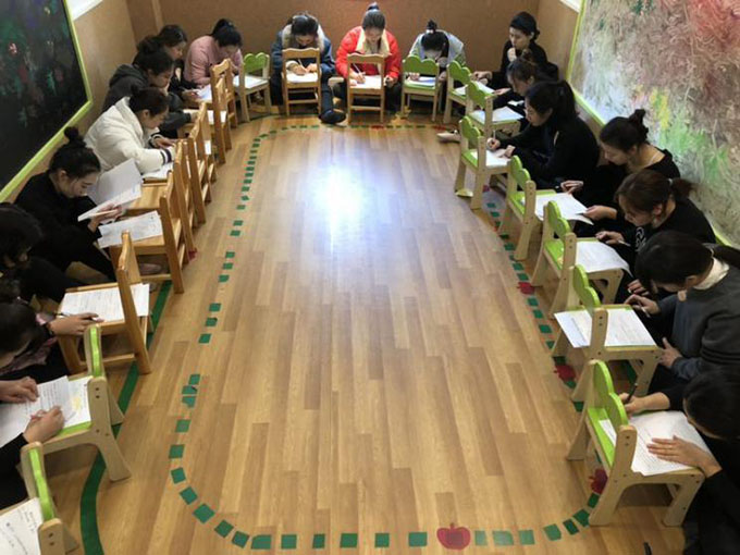老師們各自準(zhǔn)備著所需要的教具,雖然是師資培訓(xùn)考核,但是,我們的“小朋友們”也準(zhǔn)備好咯~