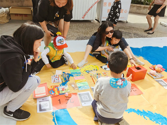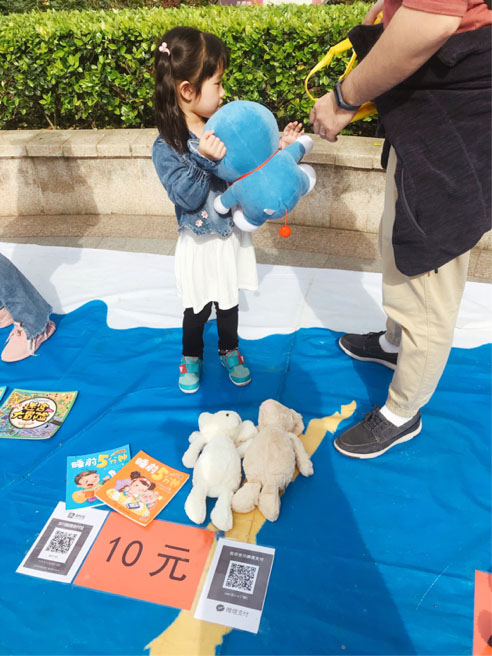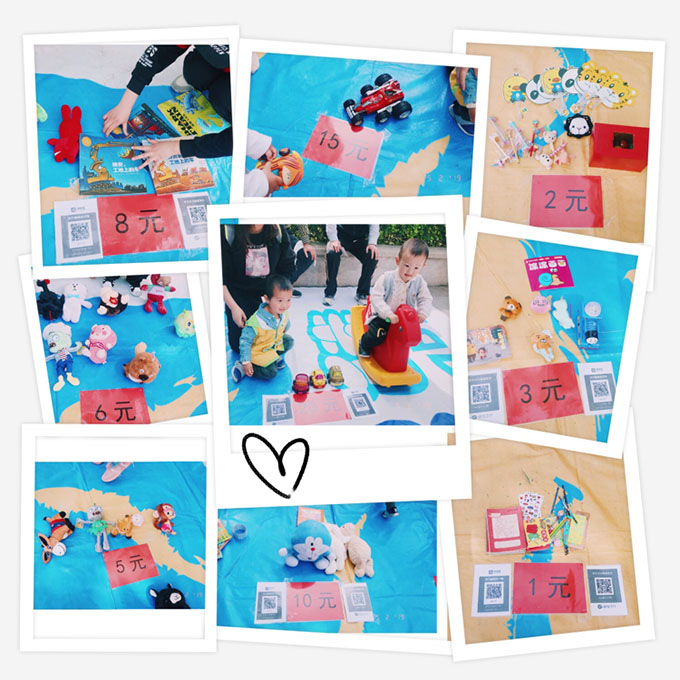 活動(dòng)共有9個(gè)價(jià)位不等的攤位,孩子們把自己心愛(ài)的玩具、書(shū)籍、娃娃、學(xué)習(xí)用品等物品擺入攤位,找尋一個(gè)攤位做小老板,賣(mài)力吆喝,感受買(mǎi)賣(mài)的樂(lè)趣。