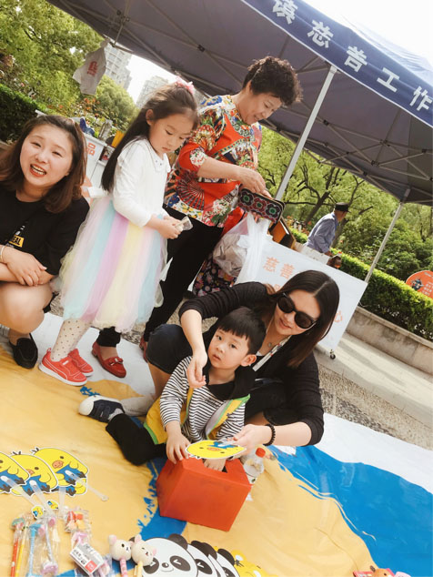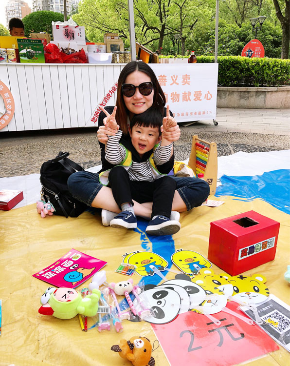 隨著孩子們的吆喝聲,吸引來(lái)了許多大朋友小朋友們,他們挑選物品獻(xiàn)上自己的愛(ài)心。