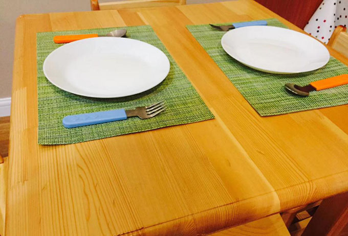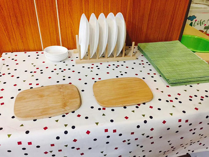 開飯了。鋪平餐布,備好刀叉,不需要成人的幫助,孩子們自己就能獨立吃飯。