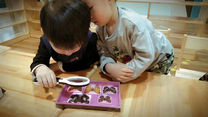 -----孩子們在使用放大鏡觀察蝴蝶標(biāo)本-----
