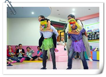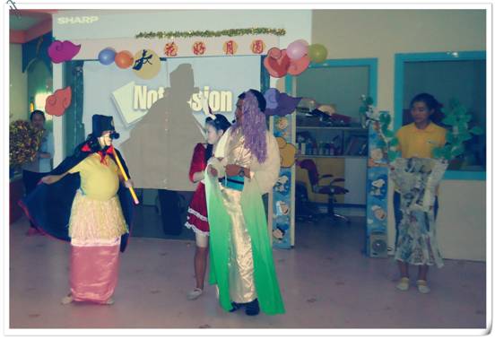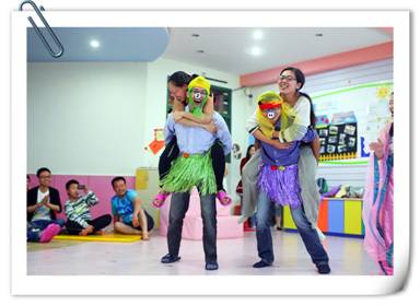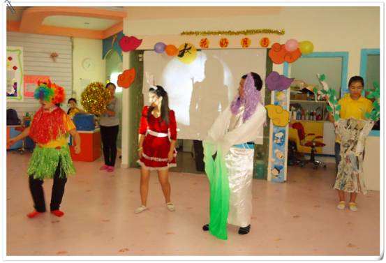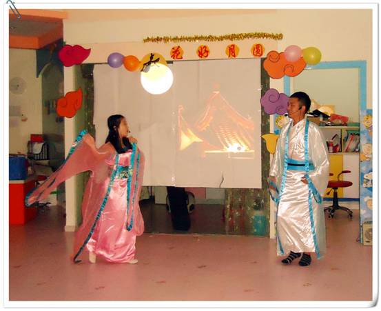 接下來,家長和寶寶們欣賞了一出由老師們自導自演的舞臺劇《嫦娥招友》。