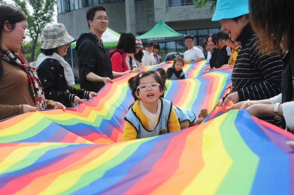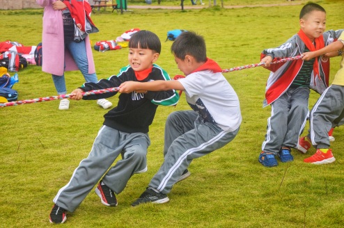 在拓展老師的帶領(lǐng)下,與大家一起完成溜溜布、拔河等游戲,在歡聲笑語中提高孩子的意志力。