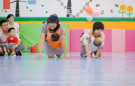 整場典禮在老師們合唱手語歌的《彩虹的約定》聲中拉開了序幕!接著是親子游戲--袋鼠爬。小小的親子互動游戲非??简灱议L們的體力喔,有些家長抱著寶寶才爬了半圈已經(jīng)氣喘噓噓的了,有些家長則非常神速地到了終點,這游戲不僅鍛煉了大家的身體,還鍛煉了家長與寶寶的團隊合作能力及協(xié)調(diào)能力。