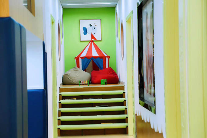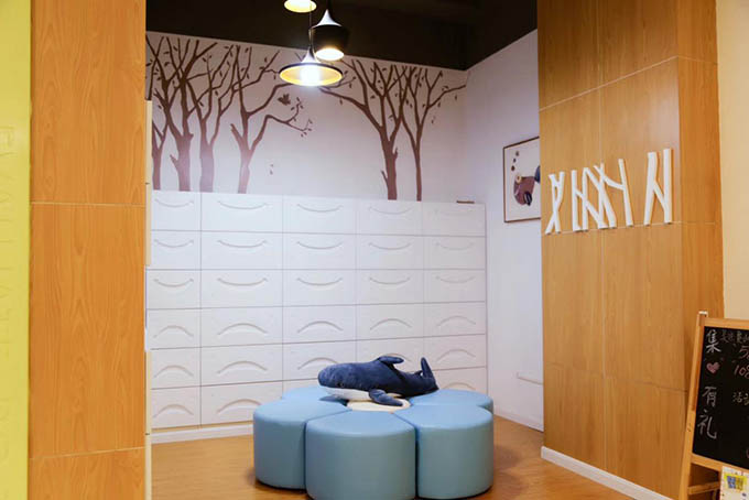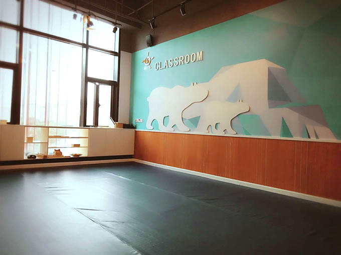 下面就是親子互動教室啦,以后的親子課程都會在這里哦。簡單大方的設(shè)計,對寶寶的專注力會有很好的培養(yǎng)。