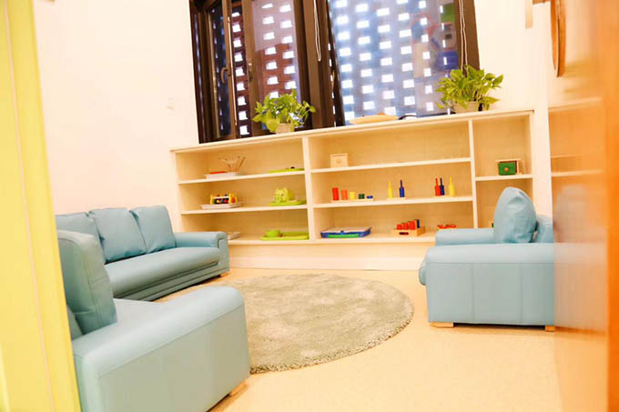 大堂右邊的一個非常溫馨教室就是平時老師們與家長寶寶VIP互動室,以及寶寶的情緒安撫室。