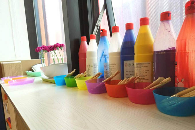 第二個就是顏料區(qū)域,多彩安全的顏料讓寶寶藝術(shù)的天堂自由的翱翔。還有就是手工階段,充分培養(yǎng)寶寶的動手操作與創(chuàng)造力。