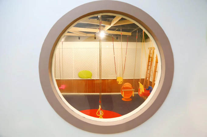 最后壓軸亮相的就是我們的運動教室啦。低調(diào)的奢華有沒有!蕩秋千,攀爬墻各種運動器材應(yīng)有盡有,你還怕寶寶運動不夠嗎?軟墊的設(shè)計減少寶寶在運動過程中的受傷幾率。