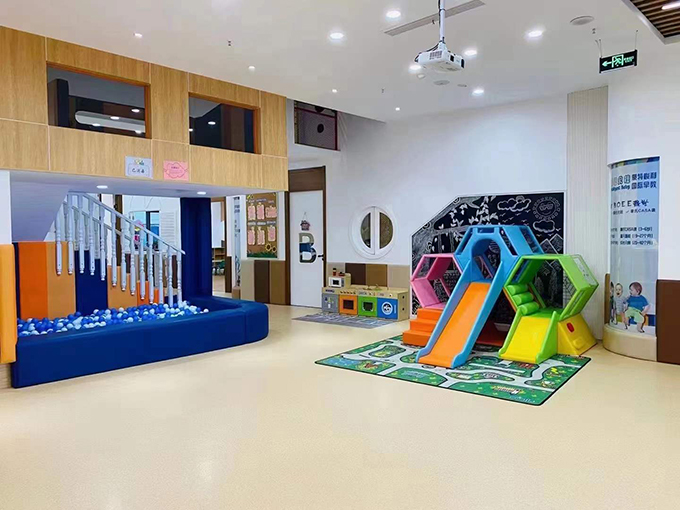 公共區(qū)域——依據(jù)寶寶空間敏感期設(shè)置的蜂巢滑滑梯